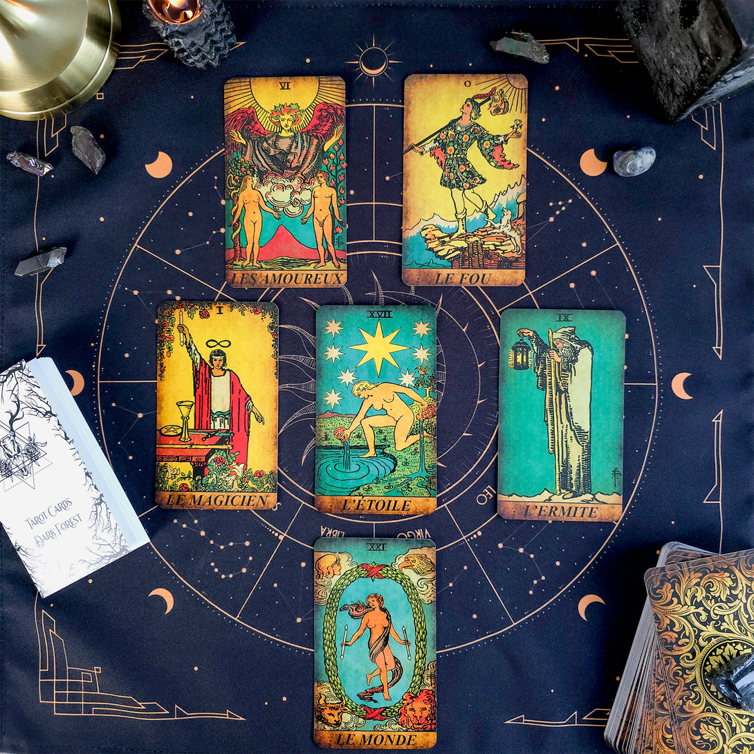• 🧵 Panno in gabardine per tarot – Superficie di lettura perfetta, Dimensioni: 46 x 46 cm (18 x 18 pollici)