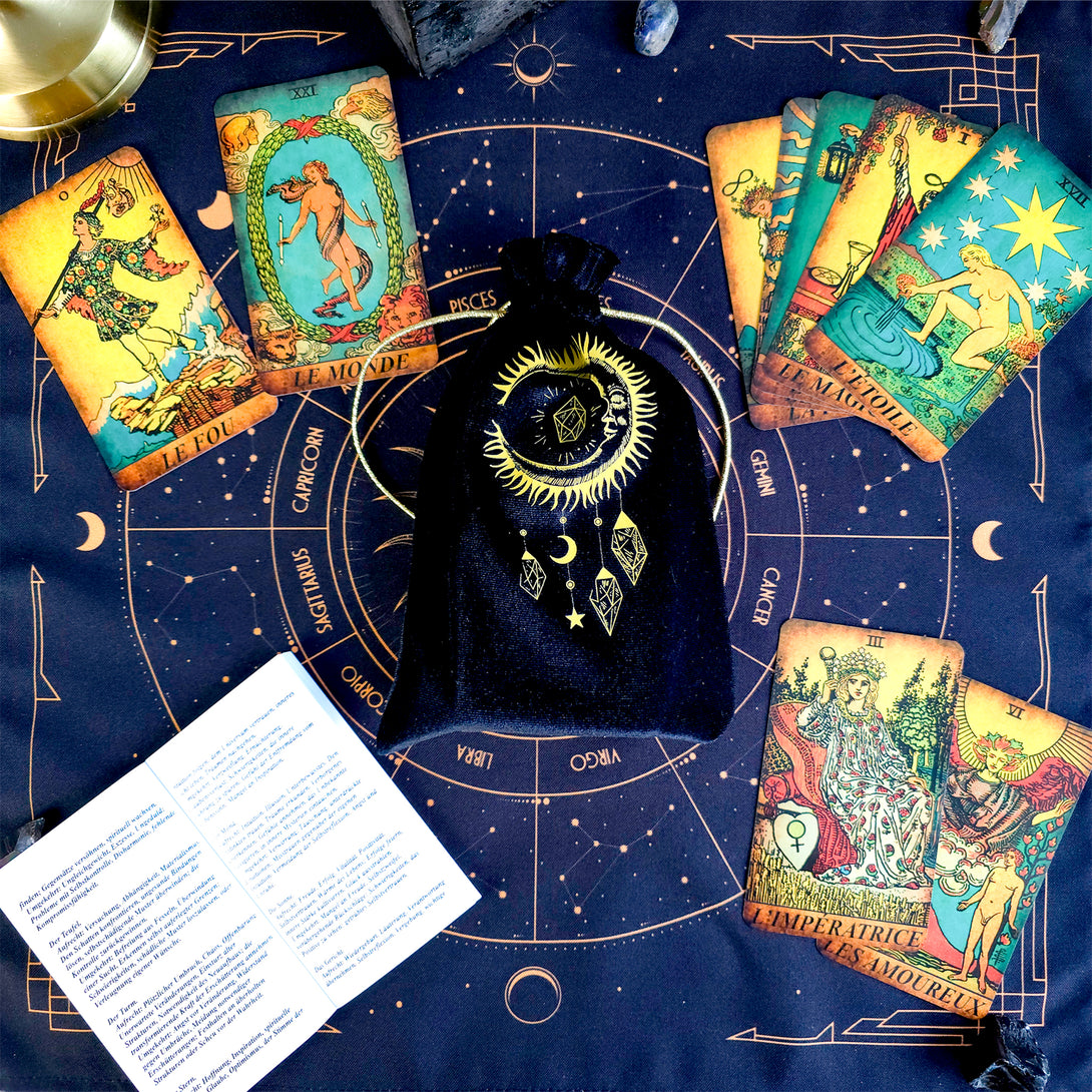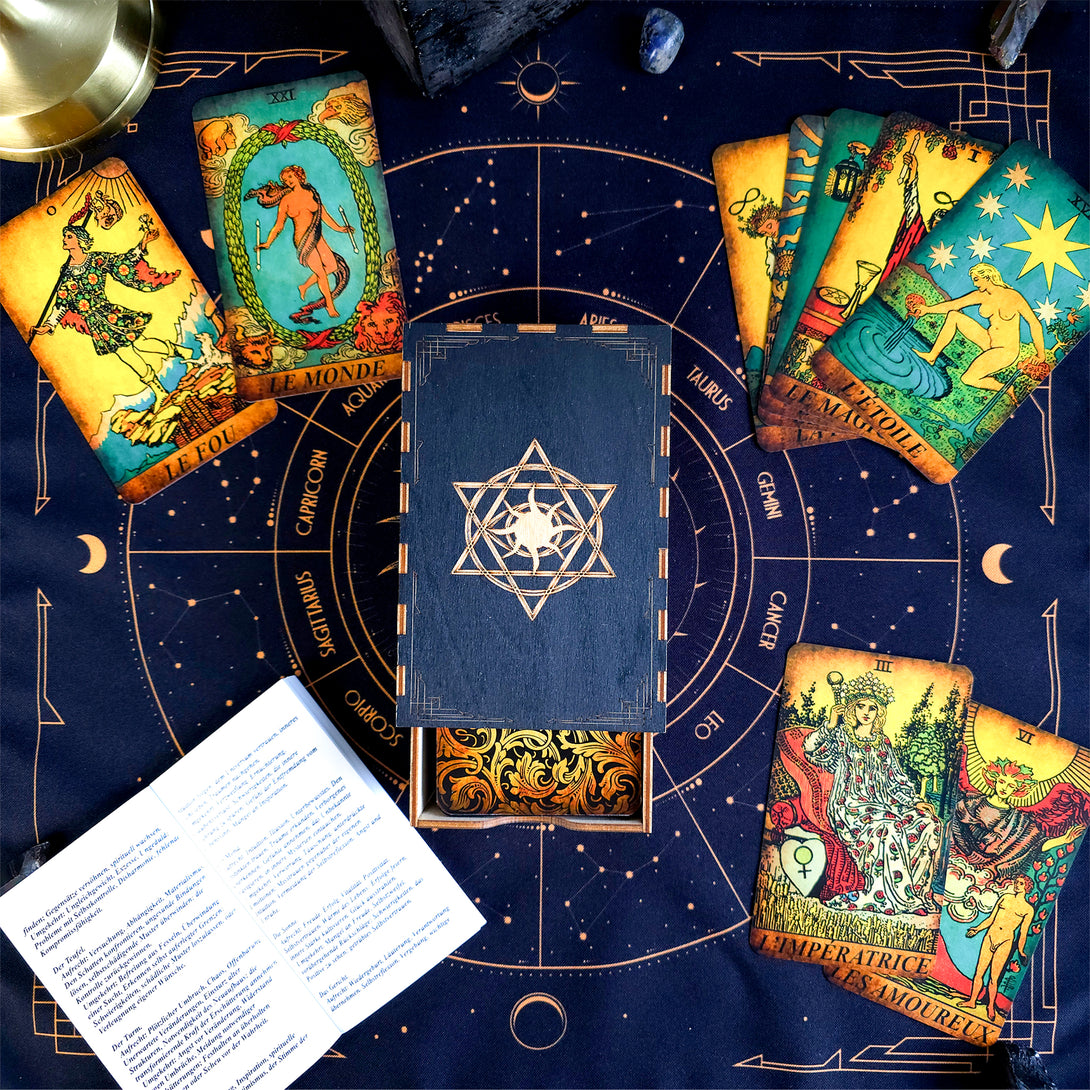 • 🗝️ Set include: Mazzo completo di 78 carte (22 Arcani Maggiori, 56 Arcani Minori)